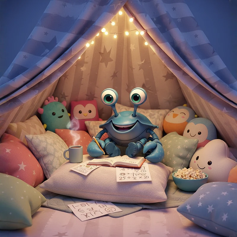 Canny turns homework into a cozy event, building a comfortable space with blankets, snacks, and maybe a few favorite companions nearby.